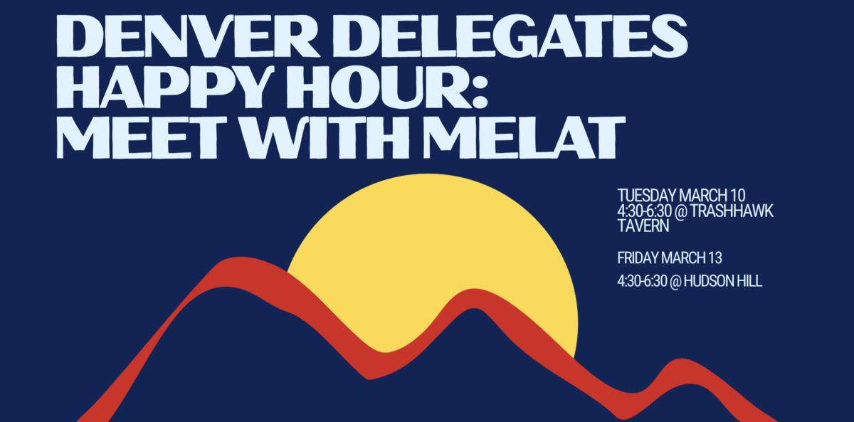 Come meet and greet with Melat and other Denver Democratic Delegates this week before assembly!