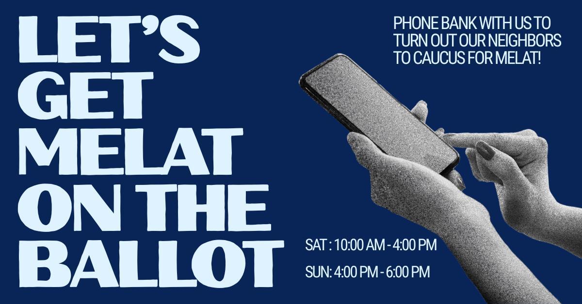 Hop on the phones with us to call prospective caucus-goers and tell people about the movement to get Melat to congress.